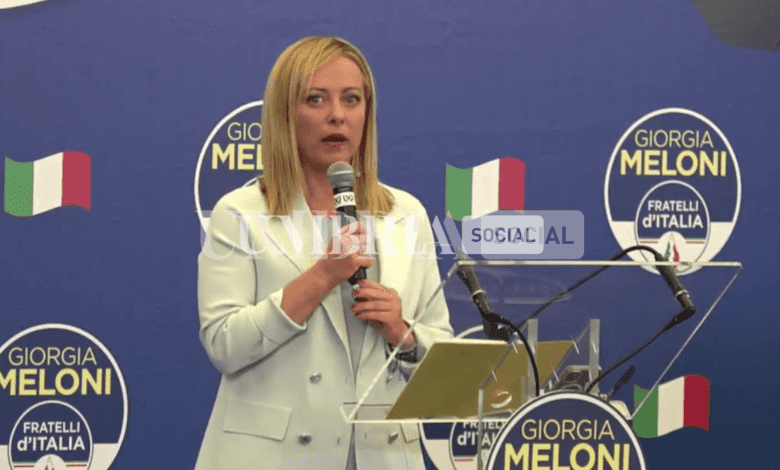 Giorgia Meloni, tra le lacrime e gli abbracci dei suoi militanti in sala, ha concluso i ringraziamenti cantando “Ma il cielo è sempre più blu” di Rino Gaetano e – dopo aver esposto un cartello con la scritta “Grazie Italia” – sulle note di “A mano a mano”, ha salutato la sala gremita di media italiani e internazionali.